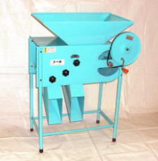 〇選別性能は抜群!ワンタッチハンドル式で 二段選別装置付です 〇脚は組立式、軽量コンパクトなため、格納時 非常に便利です。 〇手回し式の他に、動力式もご用意してあります 〇一番・二番籾出口を前・裏どちらにでも設置 が出来ます 〇伝動手段はベルト方式のため使用時は 非常に静かです 〇動力式は二段式モータープーリーを使用している ため、2段変速でお使い頂けます |